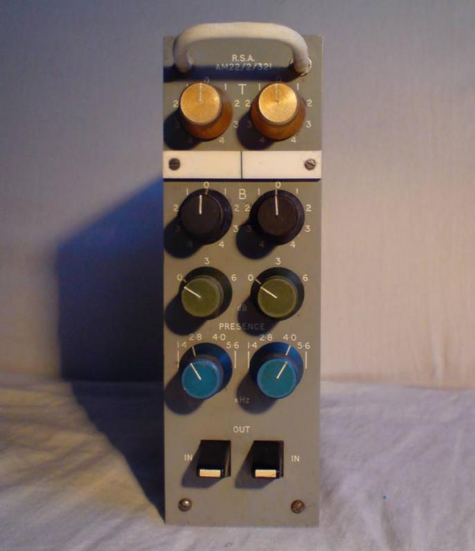 3-Band mit umschaltbaren Präsenz Filtern & kontinuierlich regelbaren Lo & Hi Shelf Bändern & hochwertigen Ringkernübertragern. Als geracktes Original eine absolute Rarität mit unverkennbarem Germanium TG-Sound.
