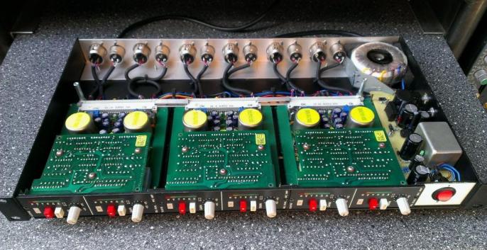 Klassischer, knackiger SSL 4000er E-Serie Sound mit 6 Ch. handlich verpackt in 1HE mit integrierter linear PSU.