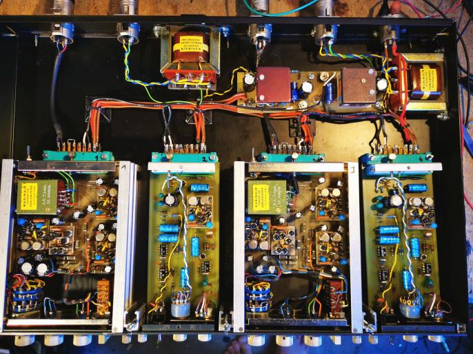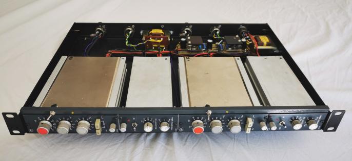 Anfang der 70er stellte Neve ein kompakteres Pult für Ü-Wagen & kleinere Studios vor, das nach seinem Herstellungsort benannte Kelso. Es beinhaltete abgespeckte Channel-Amps mit simplen 2-Band EQ´s (ohne EQ Schalter - den wir nachgerüstet haben), die Preamps samt Eingangsübertrager glichen jedoch denen im legendären 1081er Modul & klingen dementsprechend gut. Allerdings besitzt das 3116 keinen richtigen Ausgangstreiber nebst Ausgangsübertrager, da da Signal nur pultintern unsymmetrisch bei -10dB an den Summenbus geführt wurde. Um das Potential diese Moduls also voll auszuschöpfen, ist es nötig eine 1081er Ausgangsstufe dahinterzuschalten, was in unserem Rack mit korrekten, diskreten B440 Amps & dem orig. Marinair 1173 Übertrager der Fall ist. Zusätzlich bietet es zwei 3310 FET Limiter, incl. Hard-Bypass.