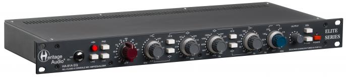Heritage baut seit Jahren sehr erfolgreich hochwertige Neve Clones a la 1073 & 1081 etc. samt arbeitsintensiver & teurer Hand-Verdrahtung wie in den Originalen. Kürzlich begann man für einen breiteren Markt auch preiswertere Geräte in modernerer aber effizienterer & dh. preiswerterer SMD Technik herzustellen. Schaltungsmäßig (& dh. klangmäßig) immer noch fast wie die Originale (incl. der Übertrager), bietet die einwandfrei mit hochwertigen Schaltern & Potis gefertigte Elite 19" Serie legendären Neve Class-A Klang für verhältnismäßig günstige Preise. Der HA-81 verfügt über die klassische 1073 Class-A Schaltung in Kombination mit dem flexibleren 4-Band EQ des 1081 & lässt ausstattungsmäßig keine Wünsche offen.